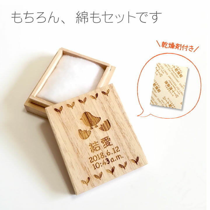 なのに、産院でもらったまま、紙包みやプラスチックケースに入れていませんか? せっかくなら、ちゃんとした桐箱で、その上、世界にひとつのかわいいオリジナルケースにしまっておけたらとっても素敵だと思います。