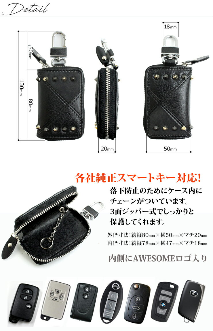 また、キーケース内に収めたスマートキーの無用な落下を防止するため、キーチェーンも内臓した親切設計。